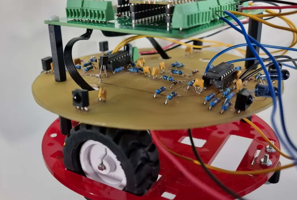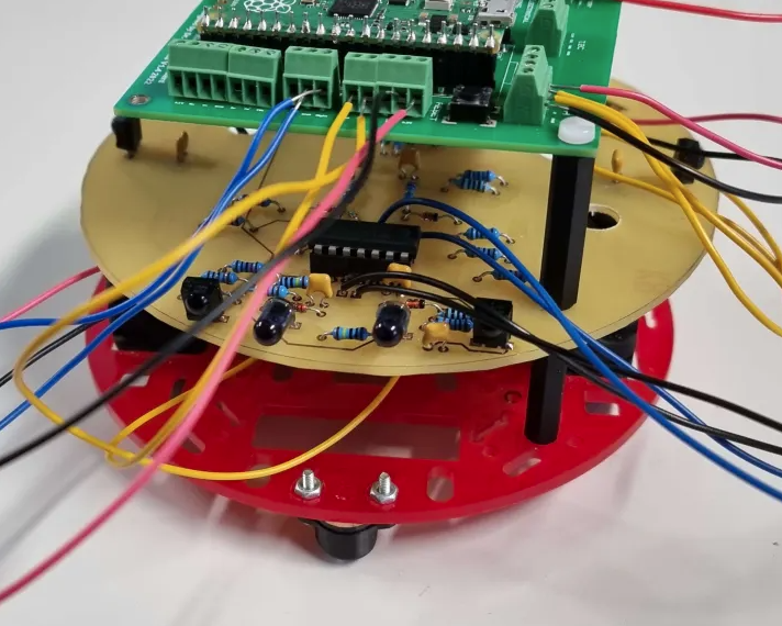 The MicroMouse now responds to its environment using the IR PCB that has been mounted onto the chassis.