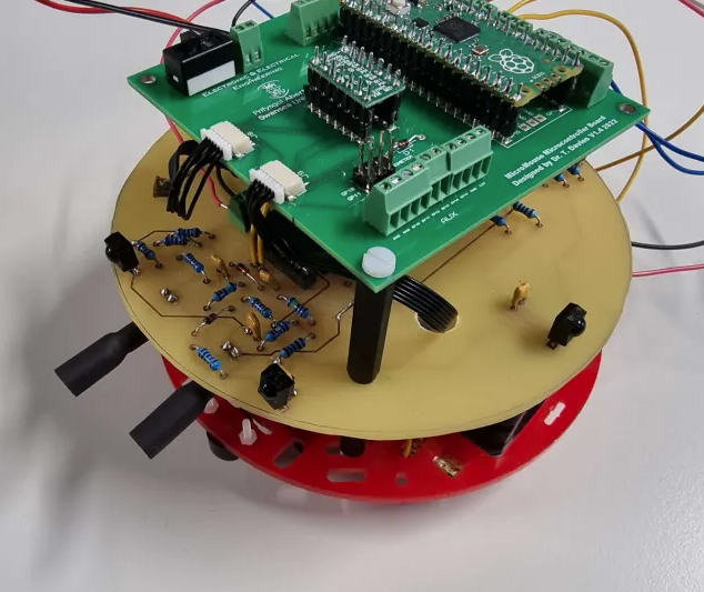 PCB mounted to MicroMouse and testing of circuit finished. MicroMouse testing with the integration of IR PCB circuit has begun.